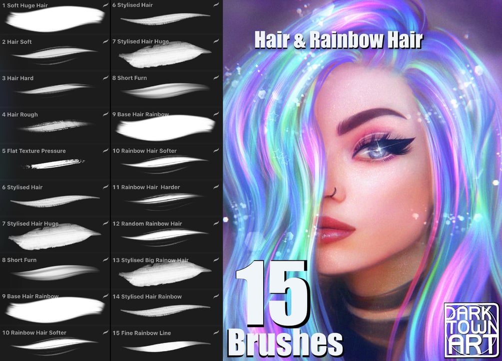 Rainbow Hair Brushset for Procreate - DarkTownArt