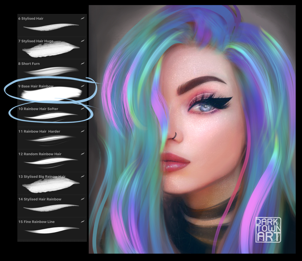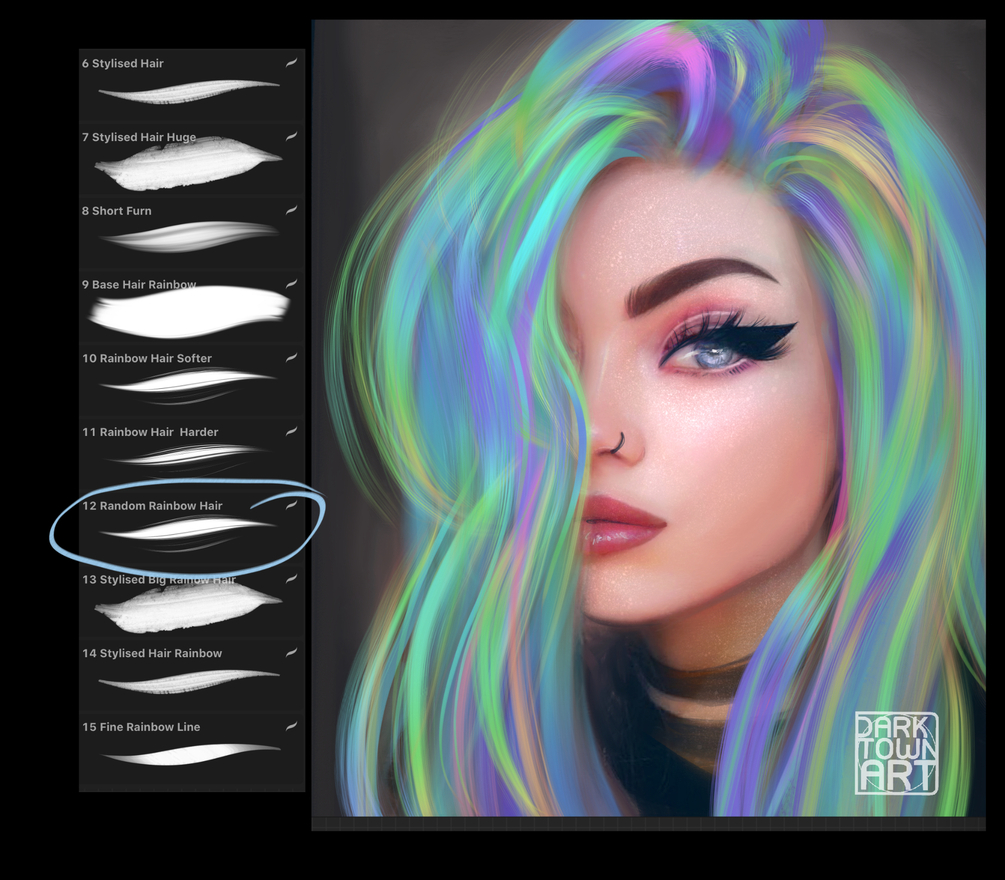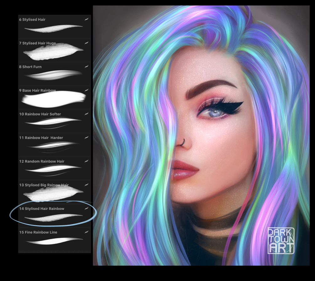 Rainbow Hair Brushset for Procreate - DarkTownArt